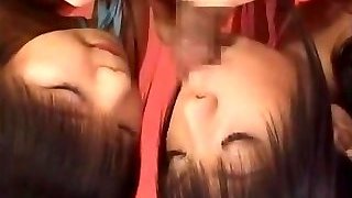 Two Japanese schoolgirls blow multiple men and swap spunk