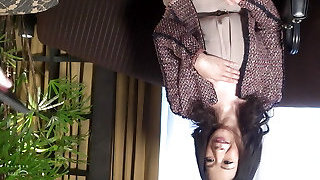 Asian mature dame in stockings abases crossdresser lying on the floor