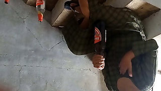 Desi local rendi outdoor drinking beer pissing beer bottle