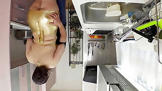 Obese Japanese chick having clothed sex with her neighbor