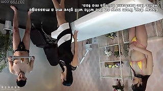Skinny Asian mistress in short miniskirt tortures her slave on the floor