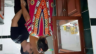 रसोई का काम कर रही नौकरानी को स्टैंड पर घोड़ी बनाकर चोदा Gonzo Maid Bang-out आवाज हिंदी में
