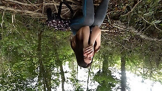 Brunette Asian girl stretches her legs for me