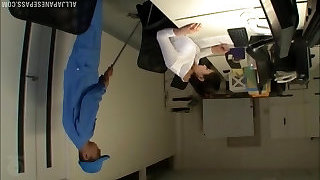 Shy Japanese girlie pleases her kinky chief with solid BJ on her 1st work day