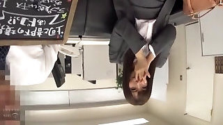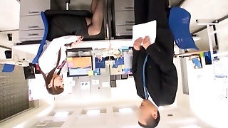Japanese secretary anxiously blows her wild coworker's cock o