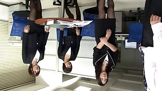 Trio hot Japanese office workers giving their boss a footjob