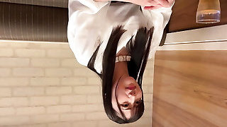 Sexy Japanese mega-bitch fingers and toys her pussy on the steps s