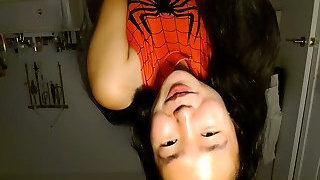 Skinny pretty asian babe masturbates her ultra-cute shaved pussy with a big dildo on webcam