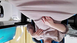 Chubby Japanese chick flashes her udders and sucks a stranger's dick