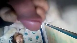 Cumshot in front of korean doll