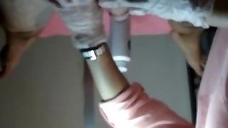 amateur Chinese gal shows black ankle socks
