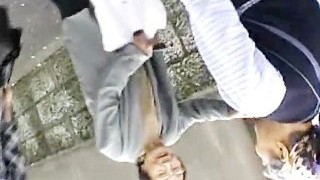 Nasty Asian girl flashes in public and goes home to deepthroat a