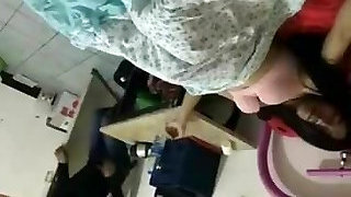 Exposing the Lower Half of Your Figure in the Fitting Room! Cloth Shop Assistant in a narrow space