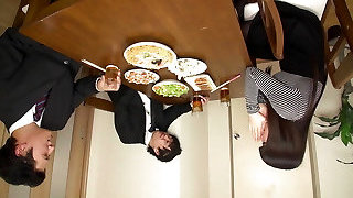 Japanese milf slut gives her cunt to her spouse's coworker at dinner time!