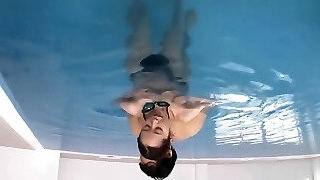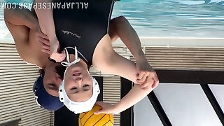 Asian woman with tight bod Airi Morisaki swims in the pool
