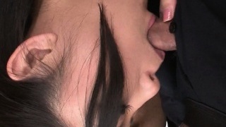 Perfect Asian secretary blowjob with a cumshot on her tongue
