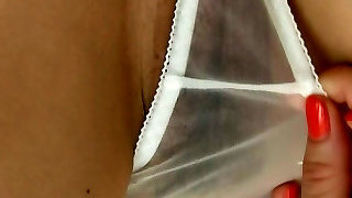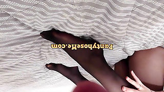 Chinese ex rubbing clit in milky pantyhose