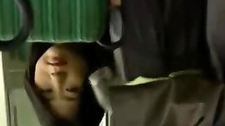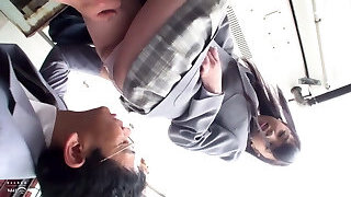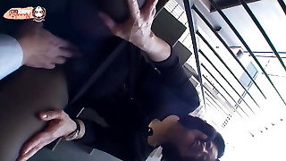 A Japanese office woman with big boobs gets penetrated in a bus